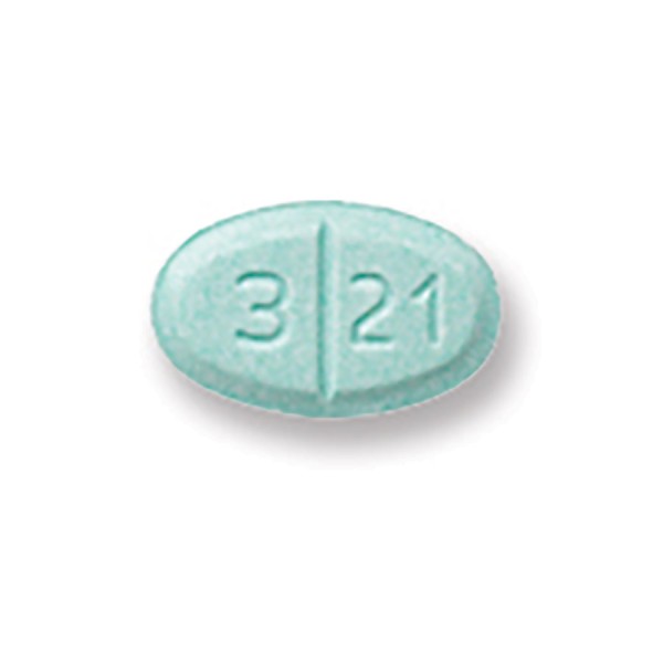 - Green, oval, flat, beveled edge, uncoated tablet, RDY/3|21